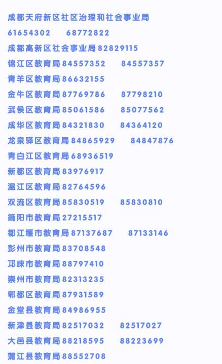 各区(市、县)教育行政部门电话