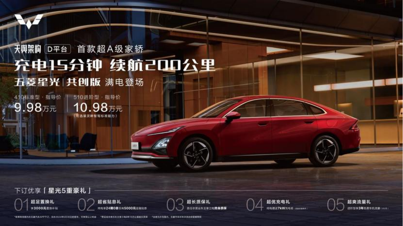 在去年底,五菱推出了一款混动车型引起了大家的广泛关注,因为作为一款搭载插电混动系统的中型轿车,它的起售价还不到9万,并且目前还有几千块钱的现金优惠。相比之下,比亚迪秦PLUS虽然起售价不到8万,但却是紧凑型轿车,在空间上没办法和星光相比。 在不到半年之后,星光的纯电版也已经上市,售价依然主打一个实惠,分别为9.98万元和10.98万元。最大的区别主要在续航里程上面,分别是410km和510km。从价格来看,对比比亚迪秦PLUS纯电版也有一定优势,因为秦PLUS纯电版的起售价为10.98万元,并且续航里程几乎一样,级别还低了一个级别,五菱果然还是将实惠这个特点落实到底。接下来的篇幅,就为大家介绍一下这款车到底怎么样。设计与混动版有明显的区分其实在相同的价位,中国品牌的纯电轿车都很容易和比亚迪秦PLUS拿出来比,毕竟这是目前国内销量最高的纯电车型之一。虽说在文章的开头提到了两者的级别不同,但实际上两者并没有因为级别不同而带来太大的差别,虽然车身尺寸有明显区别,但是实际乘坐空间也没有跨越式的变化。所以完全可以拿出来相比较。 下图为纯电版五菱星光在设计层面就是一副标准的新能源车样子,封闭式的前脸、细长的日间行车灯、分体式大灯是这款车明显的特点。只是为了区别纯电版与混动版,没有采用混动版的贯穿式日间行车灯。就个人的审美来说,其实更喜欢混动版的贯穿式日间行车灯,看上去更有气场一些。而星光纯电的前大灯容易让一些对“眯眯眼”车灯无法接受的消费者,打退堂鼓。两者在尾部的设计风格几乎一样,都采用了相同样式的贯穿式尾灯,并且线条锐利,同样具有一定的辨识度。不得不说,不论是混动版还是纯电版,五菱星光都更贴近于年轻人的审美。而比亚迪秦PLUS更接近于传统的燃油车设计,我们不在这里说谁的设计好,谁的不好。只有更偏向于那种人群,比亚迪秦PLUS更偏向于年龄段较大的群体,五菱星光的受众对象则是妥妥的年轻人更多。 续航里程主流水平,动力相对突出其实400和500km续航的高低配方案在不少中国品牌的车型上面都有体现,差不多都是这个水平,当然实际的续航里程各家都会有一定的出入。其实这个续航里程在我们的实测过程当中,来回还是有差不多七八十公里,在开空调过后的表显续航里程比实际续航里程相比差别并不大。虽然没有进行精确的测试,但是通过实际和表显里程就能看出,星光的续航里程水分是比较小的。 其实大家购买电动车,当然希望续航里程越高越好。但是还有就是也希望表显和实际的差别能够尽可能的小,如果差距太大也没有意义,实际的续航里程不高不说。还会因为不准确的报数,让消费者摸不清车辆到底还能跑多少而产生续航焦虑,所以说电车的表显续航里程显示准确也是一个很重要的指标。说起来星光的动力水平竟然还不错,特别是在同级别车型当中更是突出。150kW/310N·m的动力输出可以说是傲视同级了。要知道秦PLUS这个数据才是100kW/180N·m,两车完全不在一个层面。这也让星光拥有了7.3秒的百公里加速,要知道这个级别的很多电车都只敢标注0-50km/h的加速时间,充分说明了星光对自己的动力的自信。 这样的动力水平在实际驾驶过程当中也有着充分的体现,当天为暴雨路况,路面抓地力的确会差一些。但是车辆在运动模式下油门稍微深踩一点就能够让前轮打滑,甚至于有一次红绿灯起步油门稍微给大了一点,轮胎打滑相对严重之后还出发了ESP对于车轮的制动。所以说在雨天驾驶的时候,起步阶段油门还是要温柔一些,或者使用标准模式和经济模式行驶。但是这同时也反映出了原厂轮胎的抓地力稍微差了一点意思,当然作为一台纯家用车来说倒是也没啥大问题。如果对于抓地力有更高需求的消费者,建议更换一套前轮就可以,后轮可以不用管。除此之外,底盘对于路面震动的过滤也表现的比较出色,是偏向于舒适性的底盘,很多较大的坑坑洼都能被化解。但同时这套底盘又并不松散,不会有过多的弹跳影响舒适性与质感,这一点还是要好评的。当然我们不能将其与运动型的电车相比较,作为家用车底盘舒适更为重要。 值得一提的是车辆的转向系统、动能回收,甚至是刹车力度都能够单独调节,不同的驾驶者几乎都能够找到适合自己习惯的设置。如此丰富的针对驾驶习惯的设计,在同级别甚至于更高级别的车型当中都是比较罕见的。至于充电速度,星光在同价位车型中也很出众。所采用的2C规格的充电速度当然赶不上目前都在卷的800V,但这才是10万级别的中型电动车啊,还要什么自行车。而根据实测峰值充电功率也能够达到120kW左右,不算慢了。在实际的快充体验环节当中。在15分钟的时间,电量从29%增加到了62%,续航里程则是增加了接近200km,足够应对日常的使用了,即便是长途旅行途中的补电也不会让人感到焦虑。 再加上车辆的空间以及隔音表现都还不错,对于一款10万级的纯电轿车来说,星光的表现已经挺好了。不论是作为家庭使用还是个人通勤,星光纯电都是一款绝对合格的车型。蜀锦畅言:起售价仅9.98万元的星光纯电,定位于中型轿车,并且还有2C规格的快充,7秒破百的动力水平,这些因素综合起来就是一台比较实惠的好车,当然这也是五菱的一贯风格。对比同价位的比亚迪秦PLUS纯电版车型,星光不论是空间、动力还是充电速度上都更具优势。并且外观设