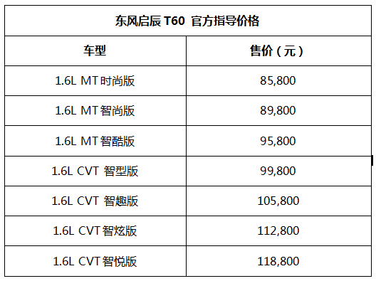 11月16日,“高品质智趣SUV”东风启辰T60在广州车展正式上市。新车共发布7款车型,售价为8.58万-11.88万...