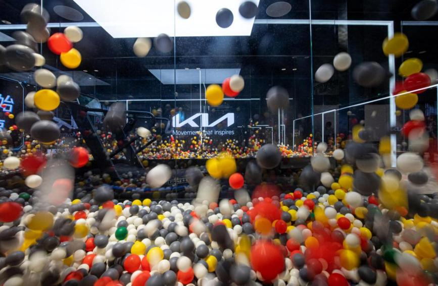 迸发“品牌重塑”新活力,上海车展东风悦达起亚展台以“movement”、“inspires”为切入点,打造全新展台形象,刷新品牌体验。通过超过1000块视觉屏幕、品牌体验空间、彩色球跑步机、新LOGO互动等,打造出充满活力的lifestyle潮流空间。