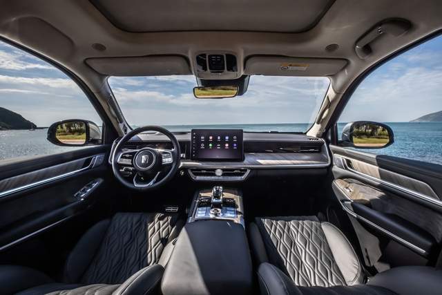 坦克500打造沉浸式的乘坐体验。通过NVH声学包、主动降噪等声学技术应用达到百万级静谧体验。内饰设计与材质彰显格调,采用66个切面的换挡手柄,温润剔透;金属质感表盘及指针也彰显身份及力量感;采用“壮丽山河”的设计理念,专属定制 山水画廊,坦克500可谓是移动的艺术馆。