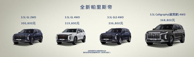 锋芒出鞘,即见非凡。自今年7月20日全新帕里斯帝在“现代荟·北京”迎来国内首秀以来,便吸引消费者的广泛关注。万众期待,不负厚望,如今终于在成都车展正式上市。全新帕里斯帝共发布4款车型,价格分别为:3.5L GL 2WD价格为30.08万元,3.5L GL 4WD价格为31.98万元、3.5L GLS 4WD价格为33.68万元、3.5L Calligraphy(鉴赏家)4WD价格为36.88万元。充满诚意的售价将打破中大型SUV市场的既有竞争格局,以匠心品质和优秀口碑构建极强竞争力打动中国消费者,让美好的品质出行生活触手可及。