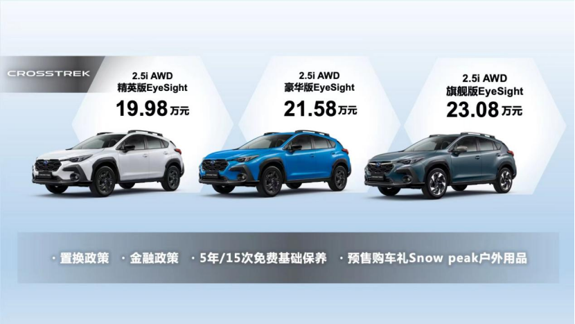 本届上海车展,斯巴鲁发布“进口新猎趣SUV”全新CROSSTREK,共计3款车型,指导价格19.98万-23.08万元。新车在设计、驾驶愉悦性、安全三方面具备硬核实力,意在陪伴车主“游猎新天地”,成为备受年轻人信赖的“伙伴”。