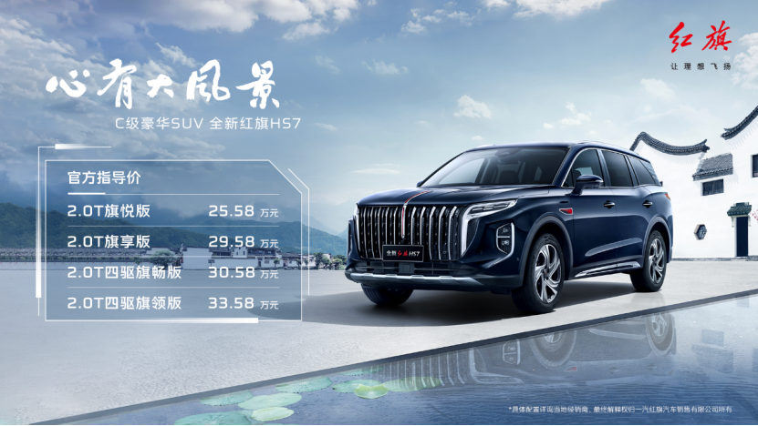 8月25日,“心有大风景——全新红旗HS7上市发布会”在第二十六届成都国际汽车展览会举行。红旗品牌C级豪华SUV——全新红旗HS7正式上市,官方指导价25.58万~33.58万元。