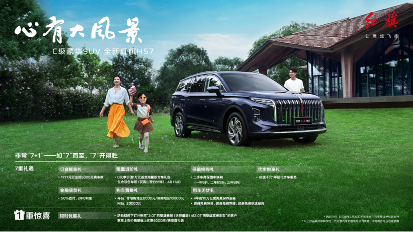 心有大风景,胸怀大梦想,奔向新未来。“红旗”携手中国航天保障共擎“中国梦”的同时,将以全新红旗HS7为代表的SUV产品,让新时代有为人士与万千和美家庭,一起得遇更大的风景,成就祥和美满的幸福梦。