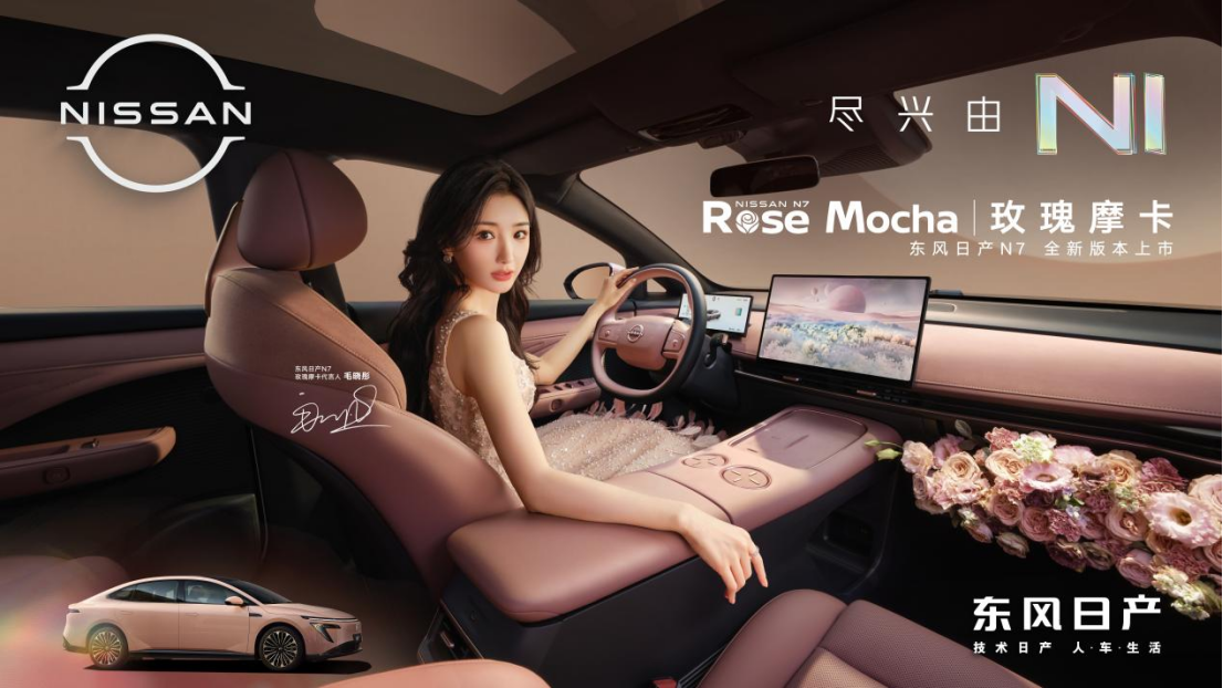 调研显示,N7车主中年轻用户占比59%,女性车主占比高达33%。正是年轻群体和女性用户对N7的青睐,当许多用户期待能拥有更具独特感与高级感的配色时,东风日产以此为灵感,打造出全新限定内饰“玫瑰摩卡”,并邀请知名演员毛晓彤参与新色构思与命名,担任东风日产N7玫瑰摩卡代言人,用她的美丽与飒爽为N7带来不一样的演绎,为N7车主解锁更多心动!