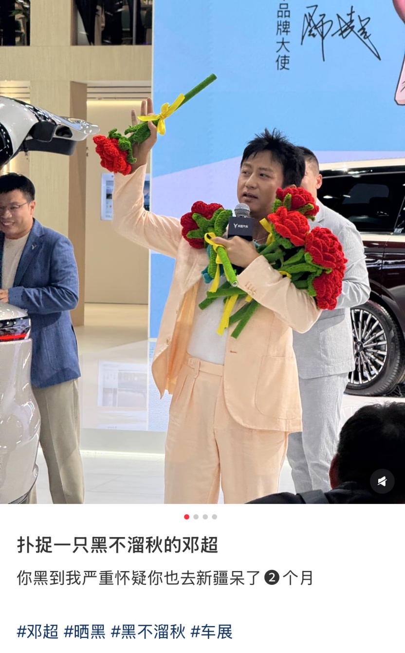 有趣的是,最近邓超似乎正好有些晒黑,现场粉丝还在讨论:“邓超今天皮肤怎么这么黑”“笑死,真的要注意防晒了”。