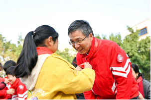 孩子们热情地为这群“超龄插班生”系上红领巾