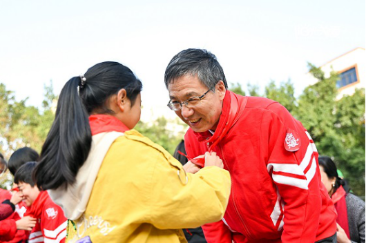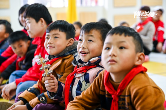 在四川自贡大岩村,有一所百年老校,这里不仅是四川历史上睁眼看世界第一人——宋育仁的故居,更是众多学子梦开始的地方。活动当天,“阳光爱心大使”踏入了这片拥有百年历史的土地,感受它的独特魅力,并与孩子们一起上课、游戏,开拓思维。为表示对“阳光爱心大使”的欢迎,热情的少先队员代表为他们系上了红领巾。