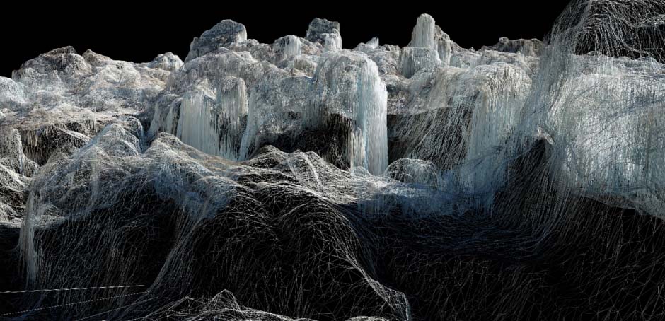 来自劳斯莱斯艺术项目的艺术家丹·霍尔兹沃思(DanHoldsworth)的新作“加速结构”(Acceleration Structures)将在本届北京国际车展上首次中国亮相。凭借独到的视角和创新的高科技艺术表现形式,丹•霍尔兹沃思创作的这幅绝世佳作将欧洲人迹罕至之地的壮阔美景呈现给世人,拥有无与伦比的美感和超高的精密度。他通过密集的野外勘测作业,用数百张照片将目标区域的每一平方英尺都详细记录下来,结合摄影测量、绘图及空间坐标提取技术并通过高端软件进行后期处理,最终创作出一组三维线框模型。以X射线的效果生动展现出阿尔卑斯勃朗峰的三座冰川——Argentiére、Bossons和Bionnassay。他呈现这三座冰川所运用的地理测绘方式,属于业届最前沿的科学手段,承载着重要的科学意义,也代表了当代人类成就的最高境界。