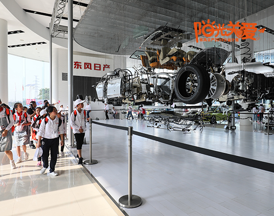 随后,这群阳光小记者来到东风日产“天马行空”展区,近距离了解汽车构造。看到数以千计的汽车零件被悬挂在空中,小记者们都被震撼到了。当得知这些零部件可以在任何时候重新组装,变回一辆正常运作的车辆时,小记者们产生了对汽车构造与组装的强烈好奇心。