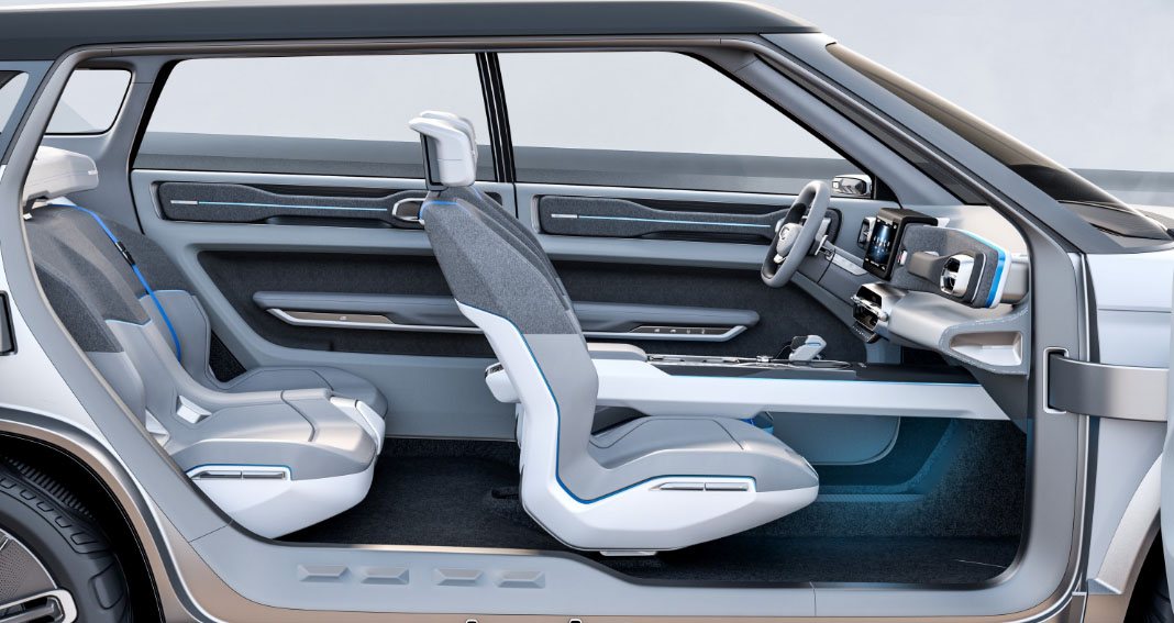全新SUV概念车“Concept Icon“的内饰也采用极简的设计风格,最大程度的保证了内部空间,在座位下方、仪表盘和门板上都巧妙地设置了储物空间。同时,这款车也搭载了最新的各种高科技智能配置。博瑞GE内饰设计上的“悬浮能量仓”也出现在了这款车上,不仅可以实现对移动终端的无线充电,而且可以通过车内的智能大屏实现信息交换。